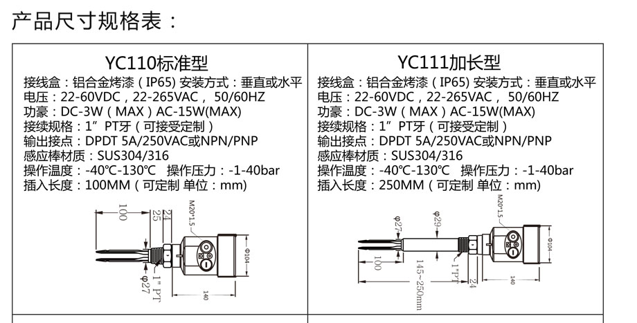 YC音叉式物/液位开关是使用压电组件产生振波,当被测介质接触叉体时,即改变音叉的振幅的频率,由智能控制电路检测出这一变化,并转变为相应输出信号。